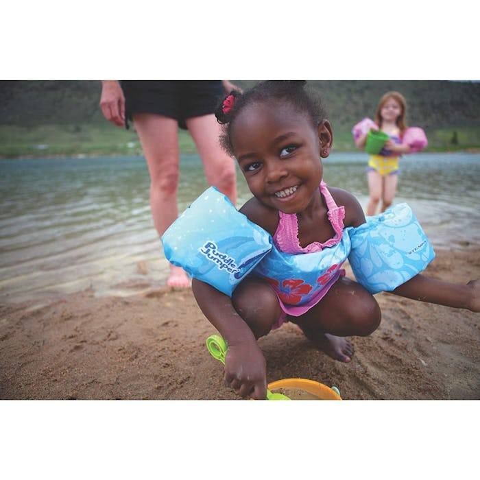 But noodles require some skill, so if you want your child to remain safe while splashing in the water and aren't in the middle of a swim lesson, the Puddle Jumper is just fine. For parents who hope to teach their kids to swim this summer, try not to panic and have fun with the process. If you're laughing and having fun, your child will see that and follow along. Catch your child as they jump into the water, throw them up in the air, make bubbles with them on the surface of the water, and just have a great time enjoying the water with them. "If they have older siblings, get them in the water too and enjoy as a family," Skilton says. If your child is struggling, she says not to push them. "Take your time, [it's a] progression. Let them go at their own pace and choose when they are ready to push forward. If you go too quickly, then you can make bad associations and make things worse." So be sure to listen to them as you go. And when you need a break from consistent swim teaching, give them their Puddle Jumper so they can float and splash with glee.