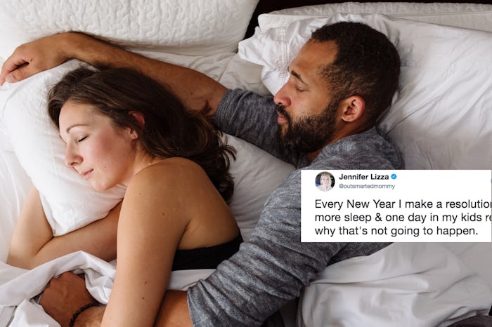 The parents behind these tweets have a much more realistic take on the whole resolution racket. Because let's be honest, any resolution that you make can be perceived as one big prank you play on yourself — what are the chances you'll actually keep any of them? Will we get more sleep this year? Yeah, probably not. Eat healthier? Sure, occasionally! Go to the gym regularly? Um...
