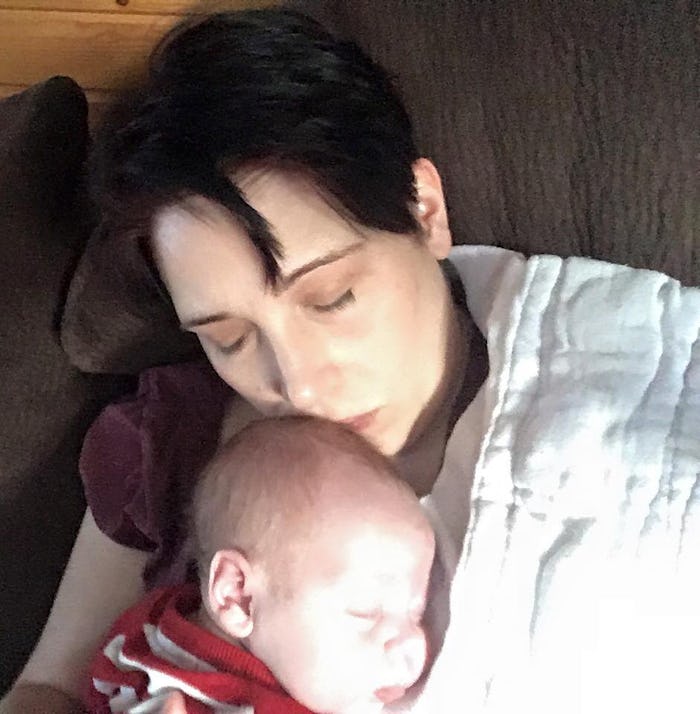 Society tells me that giving up everything — including my sleep, my bodily autonomy, my bed, and my identity — makes me a good mom, when doing so is totally harmful. New moms are often depicted as generically pleasant while simultaneously going through hell, "heroes" for failing to get anything even resembling sleep, and wonderful parents for sacrificing their mental health in the name of motherhood. That's awful.