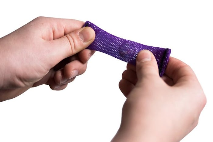 Swirl the colors around in the hourglass shaped fidget finger squash it ($12 for six) using finger manipulation for tactile stimulation. The soft texture makes this toy easy to squish and squash for hours.