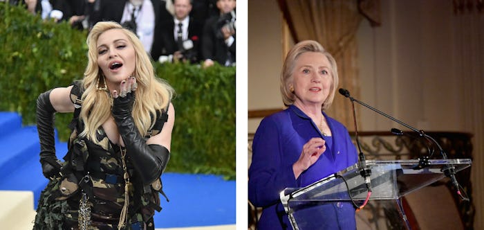 Pop legend Madonna and Hillary Clinton might not seem to be that much alike, but they're actually related. The Washington Post reported that a Washington-based genealogist named William Addams Reitwiesner found that Madonna and Clinton are 10th cousins, but declined to comment on his research to the Post directly.