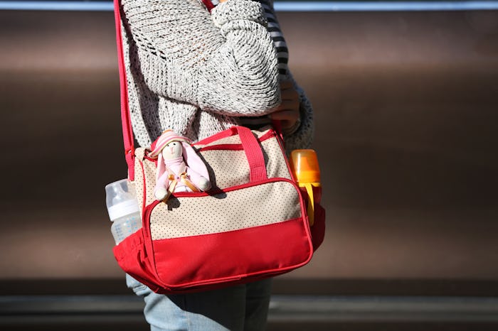 Packing a diaper bag is about anticipating many possible futures, disasters, and delays. Tylenol? Check. Sippy cup? Check. Sunscreen for an impromptu picnic? Yep. In fact, most parents keep half a store hidden inside because all it takes to ruin a dinner is to forget to bring a teether toy. Parenting is a high stakes game, and now that winter is actually here, it's time to winterize your diaper bag. If you're wondering how best to prepare for the unexpected in the land of ice and snow, Romper identifies eight things to add to your diaper bag in the wintertime. There's a big emphasis on bringing extras, and a few unique seasonal items to boot.