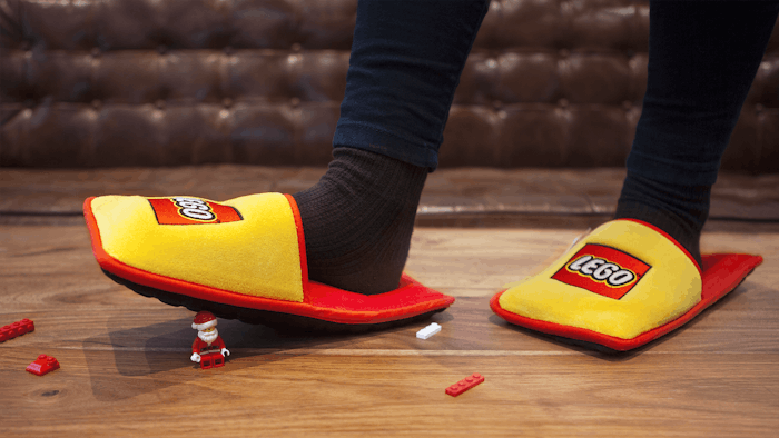 Few things spark fear in the hearts of parents and caregivers the same way that LEGOS strewn on a floor do. Meet anti-LEGO slippers, courtesy of LEGO and their advertising agency, Brand Station. This product, as I understand it, is very necessary. The LEGO-to-foot pain is unbearable. As the kids are saying these days, the struggle is very, very real. You might even say it's off fleek. While my own son is too young for LEGOS, we do have have a set of jumbo faux blocks so I've had a chance to practice my obstacle course navigation skills. I still can't say that I'm ready for the real thing. If only there was some sort of indoor-appropriate, branded foot covering we could wear to protect our delicate toes from their sharp edges of doom... alas, now there is!