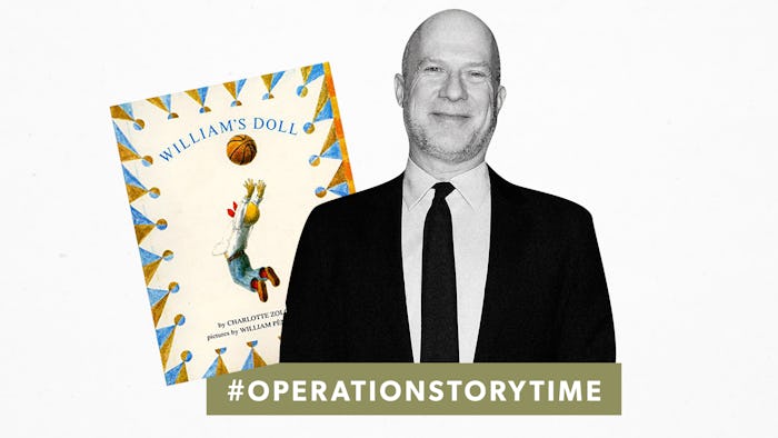 We could all use a gentle story right now, and author Richie Jackson has perhaps the perfect one. In his reading for Romper initiative Operation Storytime, Jackson chose William's Doll, a 1972 children's book by Charlotte Zolotow that follows a boy who wants a doll. William's vision is so specific — he wants one with a bonnet and blue eyes and a long white dress — that when his brother calls him a creep, and the neighbor calls him a sissy, and his dad buys him a basketball instead, you can feel the very sharp, specific pain of his being misunderstood, unseen.