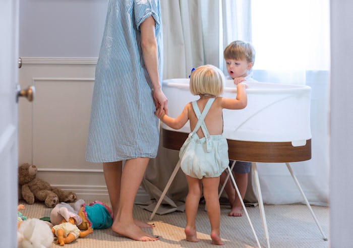 First came the “five S’s.” Since 2002, when his book The Happiest Baby On The Block was first published, Dr. Harvey Karp has convinced generations of parents that shushing, swinging, and swaddling a baby in a way that replicates the feel of the womb will calm them and encourage sleep. But in his quest to help exhausted parents, he didn't stop there — he is the creator of the SNOO Smart Sleeper, a “smart” bassinet retailing for $1,160 that responds to a baby's cries by changing the rocking motion and adjusting white noise. It is an invention he describes unironically as a caregiver, in an interview with Romper. “I always think of SNOO as being like your older sister,” Dr. Karp explains, “if your older sister moved in with you when you had the baby and said, 'You sleep, I'm gonna hold, rock and shush this baby all night long. And if the baby gets upset, I'll bounce and shush the baby more.'”