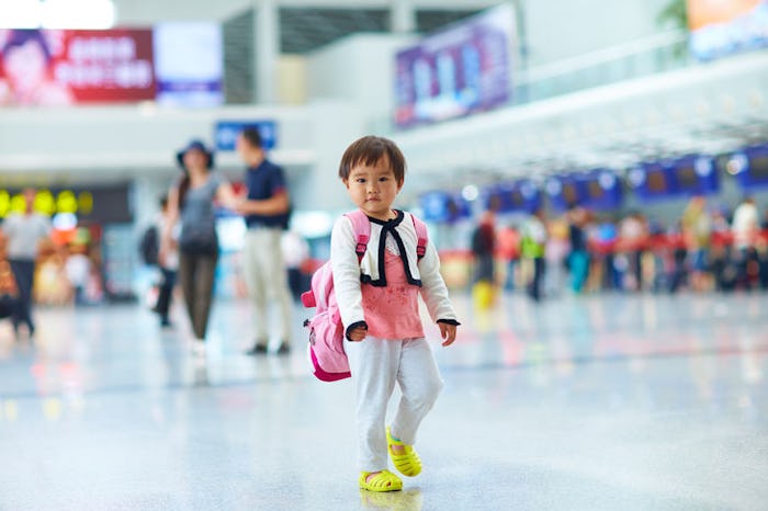 "Whether traveling with kids or not, I like to get to the airport at least 2 hours in advance. That gives my family a chance to easily check any bags, get through security, grab a quick bite to eat, and use the restrooms before boarding," Colleen Lanin, founder and editor of TravelMamas.com and author of The Travel Mamas' Guide tells Romper.
