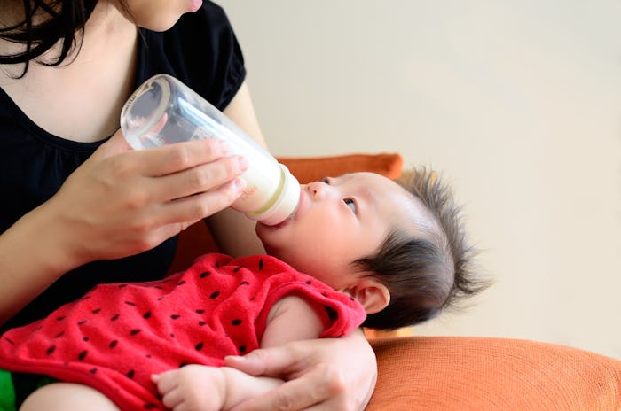 Once you're sure that your baby is genuinely hungry, it's time to feed them. Hold your baby in an upright position — the major step that sets paced feeding apart from regular feeding — instead of cradling them in your arms like most parents do when bottle feeding. Lansinoh noted that this helps your baby better control the flow of the milk, since the bottle won't be directly pointed down.