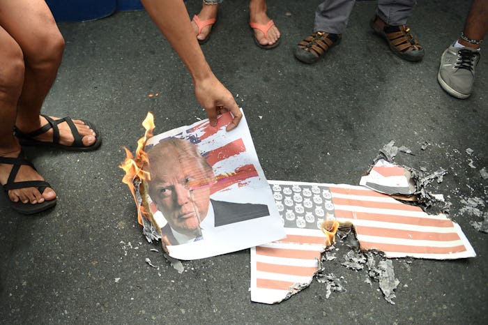 And for good measure, a closing argument: The Supreme Court has time and again ruled that banning flag burning would itself be unconstitutional, most recently in the 1990 case of United States v. Eichman. In his affirmation, Justice William J. Brennan, Jr. wrote, "Punishing desecration of the flag dilutes the very freedom that makes this emblem so revered, and worth revering." And if Brennan is too liberal to use as an example, don't forget that just last year, Justice Antonin Scalia said that, although he'd love to jail "every sandal-wearing, scruffy-bearded weirdo who burns the American flag," he accepts that it's unconstitutional. Now if only our president-elect did, too.