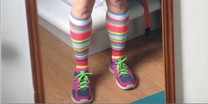 I had a training run scheduled today so I asked Remy to pull me an outfit from my workout drawer, and this is what he came up with. I rarely wear shorts on a run because chaffing is The Worst, and I hate this top because the zipper rubs against my chin while I run. I usually save my fun socks for race days, but he was really excited about them, so I didn't change them.