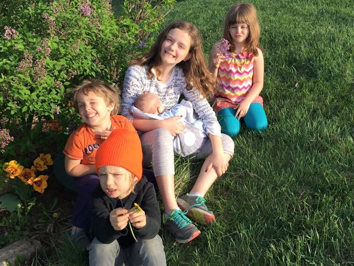 Some things are way easier now that I have such a big family. Our middle three keep each other fairly busy, so we don't have to constantly give them our undivided attention. The oldest is willing to occasionally help with the baby, which takes the pressure off us exhausted parents. Hell, sometimes it's easier to have all five kids home instead of just the baby. No, that's not hyperbole.
