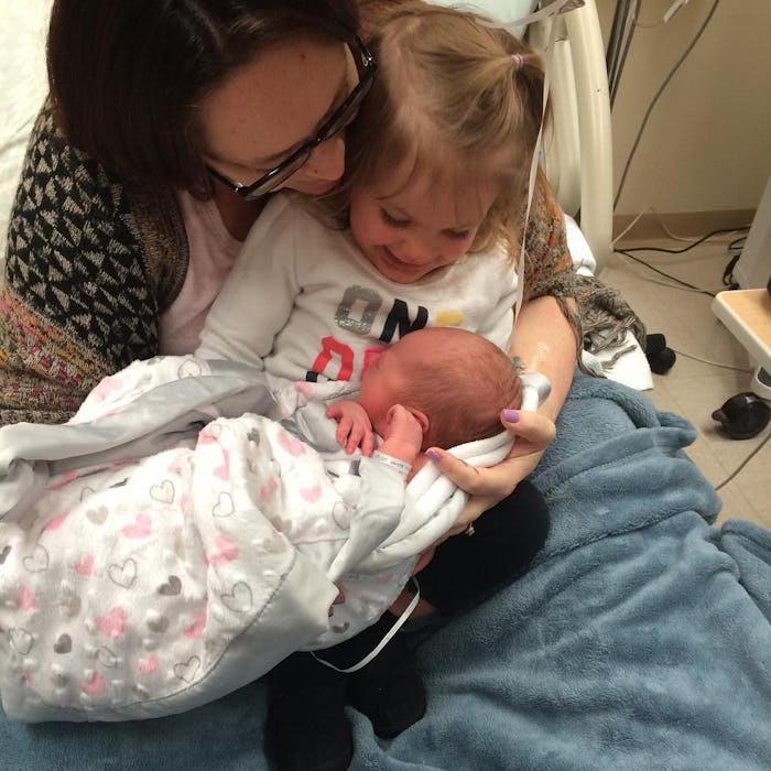 My second daughter latched shortly after being delivered, just as I'd hoped. I felt like I was was a pro by then, and even the nurses commented on how I could probably teach them a few things. The day after giving birth, my friend brought my oldest to the hospital to meet her new sister and the first thing she did was crawl up on to the bed and ask for boobs. I was relieved because it had been 24 hours since she last breastfed from me, the longest break in her short life, and I wondered if she would still want to. I let my husband take the baby and let my big girl come home to me.