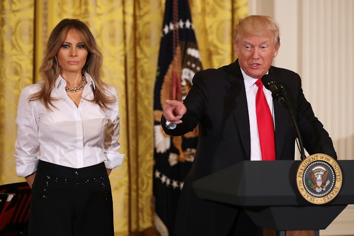 Although she appears to be generally disinterested in her role as first lady — some examples include moving into the White House six months after President Donald Trump took office and rarely making public appearances — Melania Trump reportedly watches cable news for the president and is more involved in her husband’s presidency than she lets on. According to a recent report from Politico, anonymous “friends and aides” said that the first lady keeps a close eye on how President Trump looks in the press and will alert him of any stories that she thinks portray him badly. And she’s reportedly “growing increasingly worried” about the recent leaks that have harmed his public image.