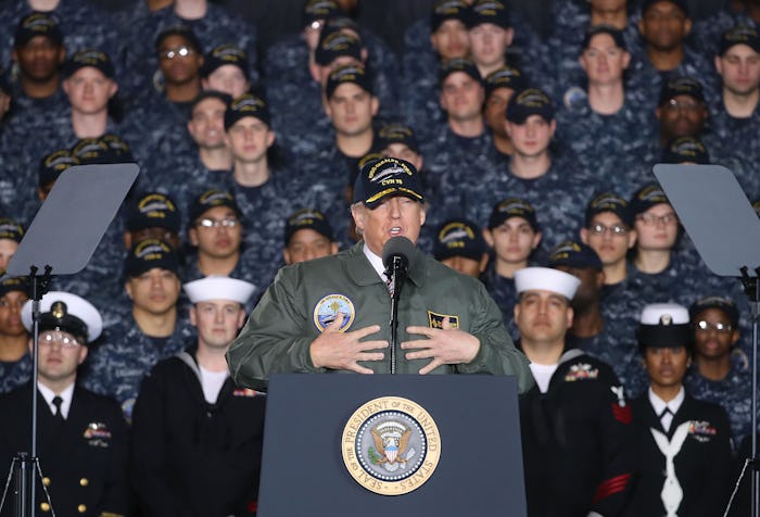 What we do know is Trump plans to keep his promise to "rebuild" a massive military that he once called "badly depleted" during his campaign, according to Quartz. During his speech, Trump promised to add $30 million to the U.S. defense budget this year, days after his administration announced that it would add $54 billion to military spending next year. This is without a sense of irony. According to the Stockholm International Peace Research Institute and the Peter G. Peterson Foundation, the United States already spends more than on its military than China, Saudi Arabia, Russia, the United Kingdom, India, France, and Japan — combined. But hey, another $84 million couldn't hurt, right? (Wrong.)