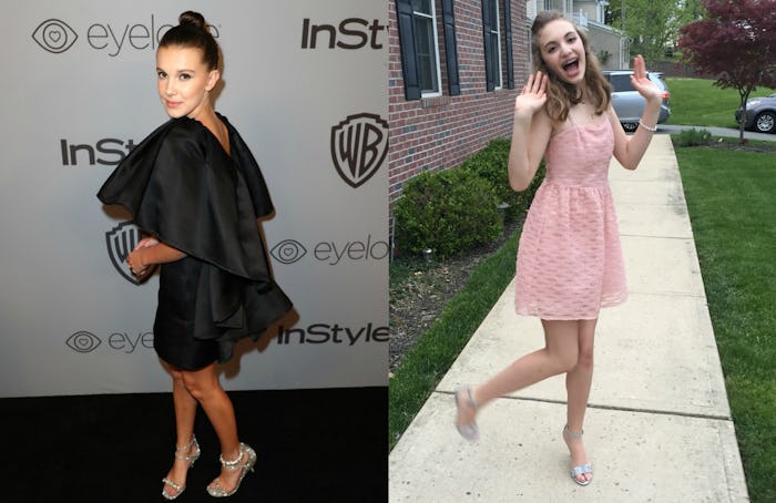Last night, as I settled in with my laptop in front of the TV to “work the Globes” with the rest of the Romper team, that exact photo of Millie popped up on my screen. “Oooh look!” I said to Isabella, sitting next to me on the couch, earphones in, taking an online quiz for her freshman year “financial literacy” class. (Buying a car offers ___ flexibility but may ___ money in the long run.)