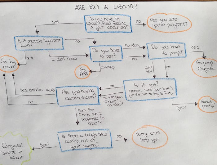 When I was pregnant with my first child, I assumed it'd be obvious when I went into labor. I mean, your water breaks right at the beginning and then you're in horrible agony, right? Well, not exactly. At least, that wasn't how it went down for me. Because I had no idea what labor felt like, there were a number of false alarms that resulted in me heading to the hospital prematurely. And this mom's labor flowchart nails just how impossible it can be to determine if it's the real deal.