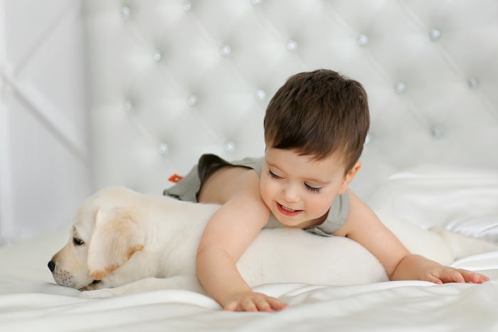 Los Angeles-based certified dog and cat behaviorist and trainer Russell Hartstein says in an email interview with Romper, “First is to understand and know your dog. If your dog’s behaviors are outside of the norm of their typical behavior, I would definitely take note.” Is your dog acting obsessive or acting outside of their normal behavior toward your baby? They could be trying to alert you to something going on that you don’t notice. “What harm can it do to get checked up by a doctor if your dog is acting obsessed with something or acting outside of their normal behavior toward your baby?” Hartstein asks.