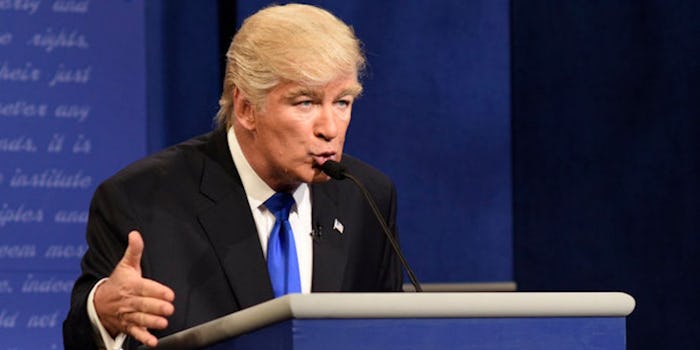 In real life, Trump has been notoriously present on the social media site, tweeting about everything like it's his job (spoiler alert: it's definitely not in the job description of the future POTUS to be an avid tweeter), mostly as a way to engage with both supporters and naysayers. In the SNL cold open about Trump tweeting, Alec Baldwin's Trump said that he gets so giddy over interacting with supporters on Twitter because he just can't help it and that: "I do it because my brain is bad."