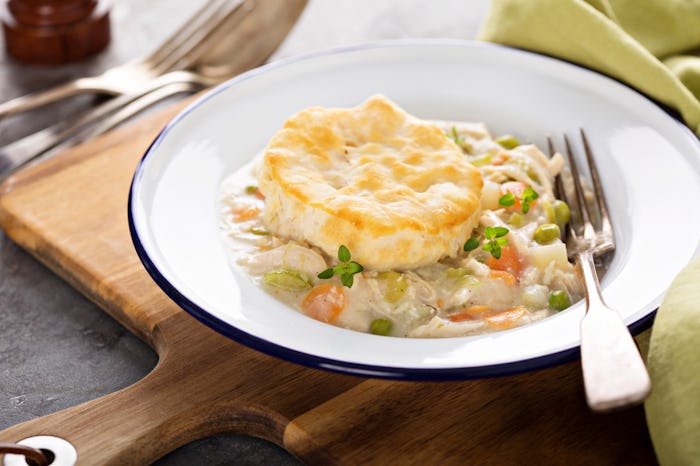 The only drawback of this recipe is that the pot pie won't have the crust you might be used to from those of your childhood. But Eating On A Dime recommends pairing the meal with biscuits for dipping or as a compliment to the main that will function similarly to a crust. You can make them homemade if you have the time, but I've never turned down a Pilsbury biscuit in all my days.