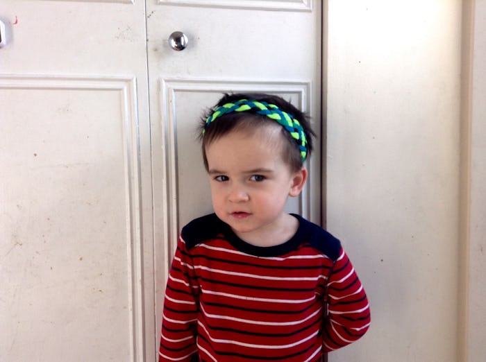 I have an extensive collection of headbands, and my boys love to pull them off my head and onto their own. The same goes for necklaces, scarves, sunglasses, my sneakers, purses — basically what's mine is theirs to play with, if I'll let them. The fact that I'll smile and laugh and pull out my phone to take a picture is usually all the praise they receive when they do this, and I know they know they're adorable because they'll say "cheese" or even ask me to take their picture.