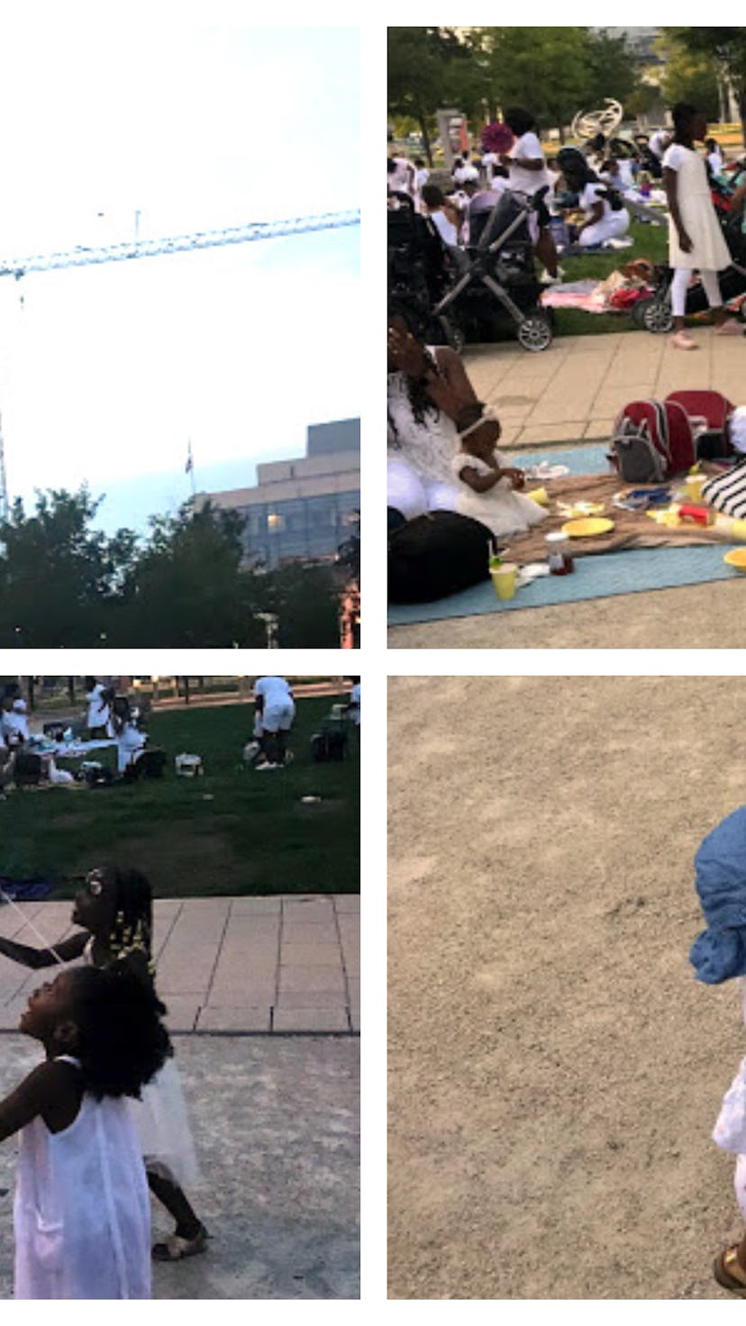Mothers and their children marched to a grassy park nestled in southwest D.C. on a humid summer Friday evening, clad in their best all-white attire to celebrate black motherhood. Playing off the ever-popular and exclusive Dîner en Blanc, an all-white pop-up dinner, Mommy en Blanc — the brainchild of District Motherhued — puts a twist on the concept, invited moms of color and their little ones to brave the daunting task of having a picnic with children clad in all-white attire. The end result is lots of giggles, new mom friends and a sea of moms celebrating our essence over bites and sips, and bonding over the Electric Slide.