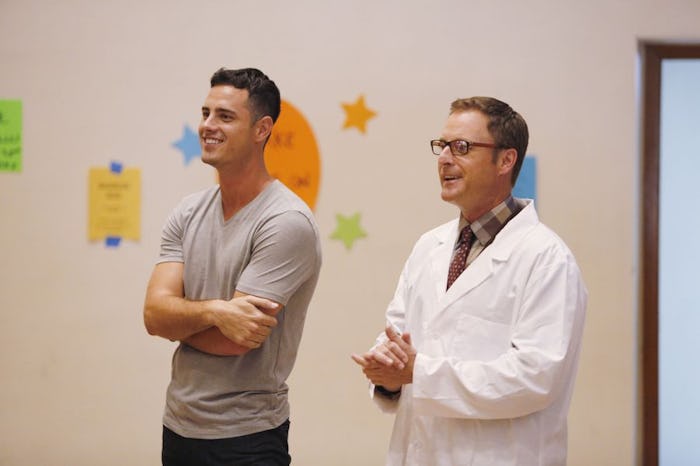 In this week's episode of The Bachelor, the contestants got schooled — literally. While both Bachelor Ben Higgins and the contestants spent their first official day together conducting a variety of science experiments and trying to find Ben's home state of Indiana on a map (yikes), the girls also ended up bobbing for apples in fish tanks at one point (because that's definitely an important educational activity, right?). All of this begs the question: Where exactly did Ben Higgins go to high school and does he really remember anything about it?