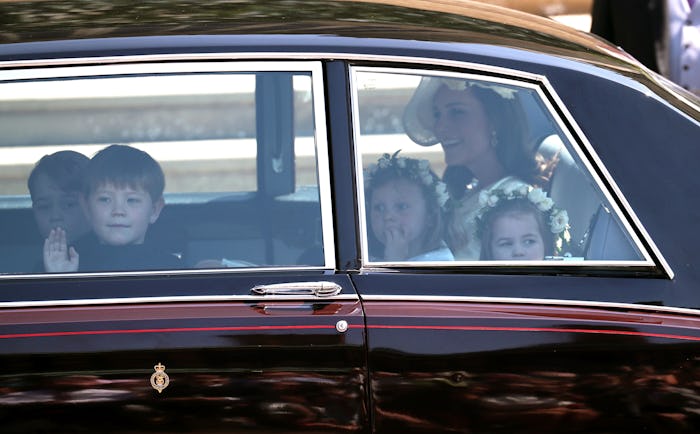 It certainly wasn't a surprise to see Princess Charlotte there at her uncle's wedding. After her precious wave to the crowd last month when she went to pick up her new baby brother, Prince Louis, it's clear she's comfortable in front of an audience and knows how to work it. She's also "been there, done that" after being a flower girl for her Aunt Pippa's wedding. Charlotte's life is going to be lived out in front of the British people, so even though she's only three, she's getting used to it. Because Charlotte's mom, Duchess Kate, isn't in the wedding, she was able to help out and manage the kids. She left Prince Louis home, so she was able to focus on Charlotte and her brother George, who was one of the page boys.