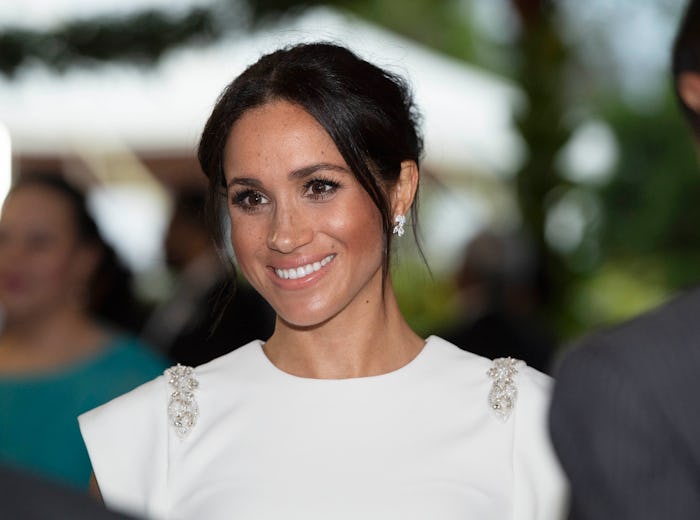 Although Markle and Prince Harry are happy to share their thrilling news with supporters, it's probably best to refrain from overanalyzing every little thing they do, say, or wear in the coming months. Take speculation about Markle's stacked rings, for instance, an accessory she was photographed with on Oct. 20. The three rings have gems, including Sapphire, Emerald, and marquise diamond, according to People, and a fan on Twitter speculated that the stones might reveal something about Markle's pregnancy.