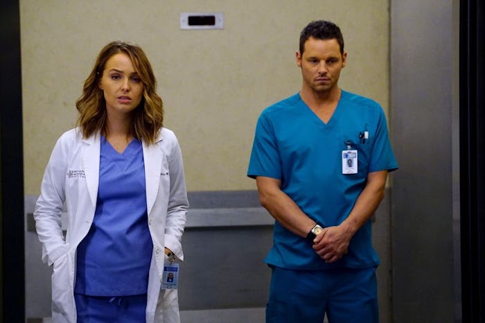 Now that Alex is definitely not going to jail and got his job back, there's really only one more aspect of his life he needs to figure out: his love life. So will Jo and Alex get back together on Grey's Anatomy? Based on Thursday night's episode, it definitely looks like a possibility. Although pretty much every one in the hospital knew that DeLuca dropped the charges against Alex — or to be technical, he made the case pointless with a boldfaced lie — no one thought to let Jo know until the end of the hour. Therefore, since she was sent home by Owen because she'd worked way too many hours, she had no idea that Alex wasn't actually in jail, but was in fact free as a bird. However, once Stephanie and Leah revealed the news, Jo wasted no time heading to Meredith's house so she could see Alex for herself.