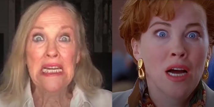 In a now-viral TikTok, which has accumulated more than 448,000 likes, O'Hara yells "Kevin!" at the top of her lungs, just like she did in Home Alone 2: Lost In New York when she realizes she forgot her son, Kevin McCallister, at home — again. O'Hara's character, of course, did the same exact scream while on an airplane in the first film, which is now nearly 30 years old. (Fun fact: O'Hara was also the voice behind the character, Sally, in another iconic holiday film, The Nightmare Before Christmas.)