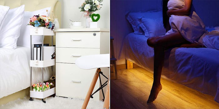 If you don't have a formal nightstand, this bedside shelf is a worthy substitute. It utilizes a strong clamp to secure to the side of the bed and is sturdy enough to hold a 15-pound load, so it won't buckle under pressure. Use it to keep coffee mugs, notebooks, your phone, and other must-haves right by your side.