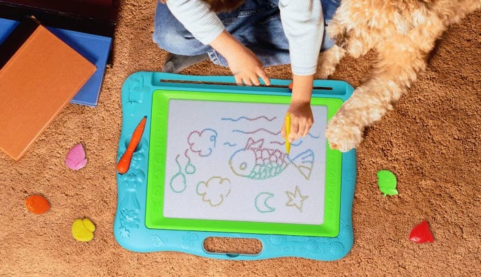 A magnetic drawing board — like the iconic Magna Doodle — has long been a toy favored by kids (and parents!) because of how much freedom it gives them to express their creative side in a fun, no-mess way. The best magnetic drawing boards on today's market, however, have come along way from that classic graphite design. Besides carrying handles and tethered pens, you'll find multicolored boards, fun accessories, and some are even smartly designed to help build on language and motor skills.