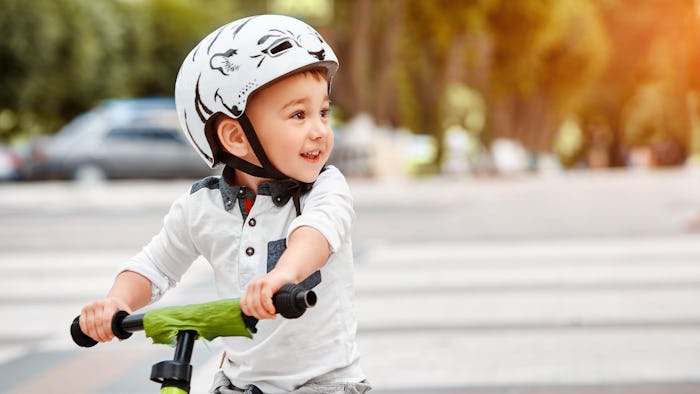 Before you choose a helmet, measure your toddler’s head, and use that to select a helmet that’s appropriately sized — manufacturers typically offer size charts based on head circumference so that you can make sure the helmet fits snugly and securely.