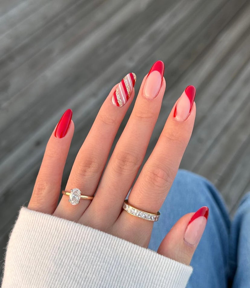 Whether you want to go merry and bright or neutral with a holiday twist, your Christmas nails will shine with any of these candy-cane-inspired designs on them.
