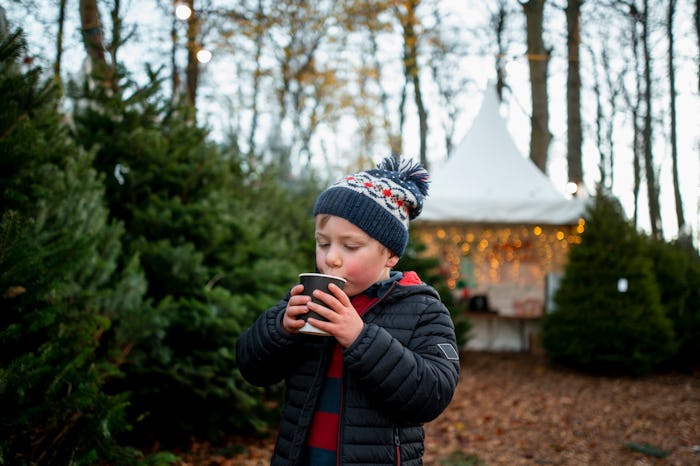 "If you or your family are at high risk, it would be better to stay on the conservative side and avoid activities where you might contract COVID-19," Dr. Nate Favini, M.D., tells Romper in an email. "I also recommend assessing the rates of transmission in your area. If you’re at average risk for a severe case of COVID-19 and the rate of transmission is low in your area, it is safe for you to go shopping for a Christmas tree this year." Taking a family trip to the tree farm may need to wait for another time, however. "If possible, send one person to get the Christmas tree this year — my recommendation is always to limit exposure as much as possible," family physician Dr. Beth Oller, M.D., tells Romper in an email. The family back home can still help choose the tree over a video chat or text message pics.