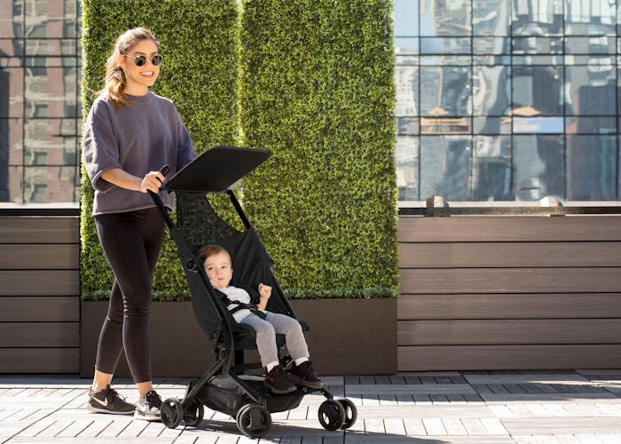 This light-as-a-feather travel stroller comes with a sun visor and a small storage section, as well as the option of seven different colors. But the great thing for traveling parents is that this stroller folds up easily into a super compact shape.