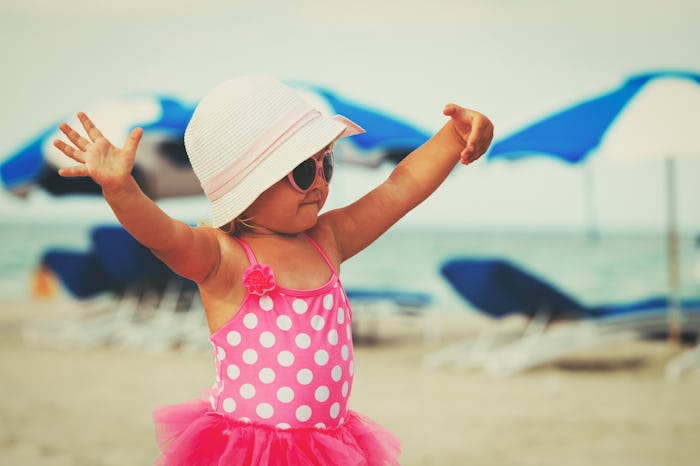 Of course, pretty much every baby swimsuit is super cute, because, well, tiny swimsuits! Awww. But finding an adorable option with UPF/SPF really is worth the extra effort, because babies have such sensitive skin — and because going overboard with sunblock isn't a good idea for very young infants. (While the belief persists that sunblock is totally off limits for new babies, the American Academy of Pediatrics actually recommends that parents apply a "minimal amount of sunscreen with at least 15 SPF on infants under 6 months to small areas," such as your baby's face or the backs of her hands.)