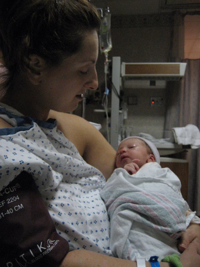As several minutes passed with my baby in my arms, it all began to feel familiar and right. She belonged to me. I was her mother, and I wasn’t going to mess this up. I couldn’t stop looking at her little, smushed face. Her big eyes wandered around the room, unfocused, turning to the sound of my voice. Her shrimpy fingers curled over mine and I felt the warmth of her bundled body in my IV-threaded arms. Motherhood was possible. It was in my grasp. My baby was here, and she was fine, and I was fine, and what was I so worried about?