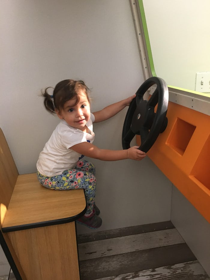 I recently bought her a little toddler y-bike. It's basically a riding toy that looks more like a real bicycle. Every once in awhile, she'll decide she doesn't know how to get off (she does) and cry. I wait patiently, offering reassurance and then kudos when she successfully dismounts.