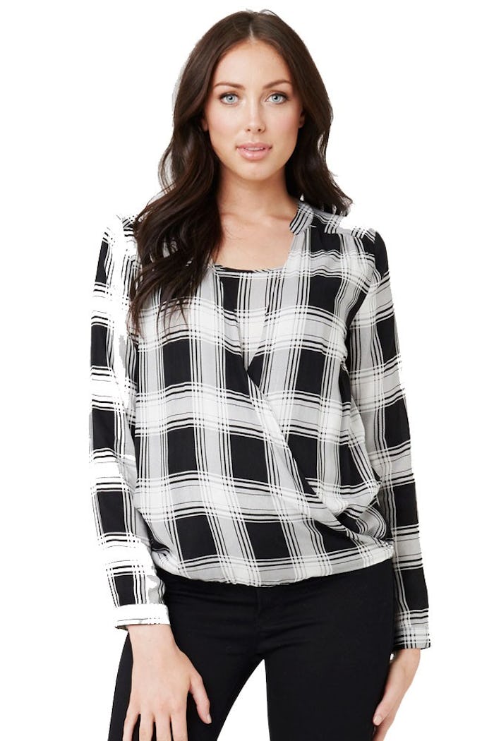 The Mayfair Drapey Maternity & Nursing Blouse ($86, Figure 8 Maternity) is a great black and white plaid blouse that can be easily worn to work with either pants, a skirt, and even a black blazer. It features a gorgeous drapey fabric, and can be pulled aside to reveal discreet nursing access.