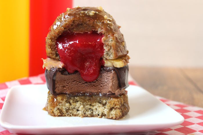This April Fools' Day recipe by Dinner Then Dessert looks to die for. Made from chocolate ice cream and strawberry filling layered between slices of banana cake shaped to look like a hamburger, this tasty treat will be a welcomed prank for any kid on the first day of April.
