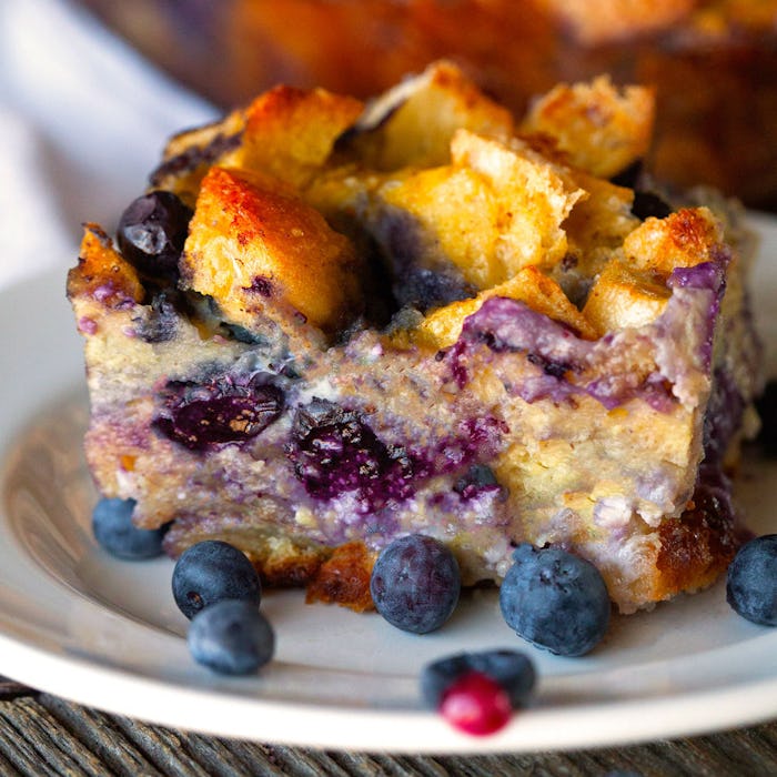 If you’ve ever had trouble deciding between french toast and blueberry pancakes, Deliciously Yum's slow-cooked blueberry french toast casserole will solve your problem once and for all.