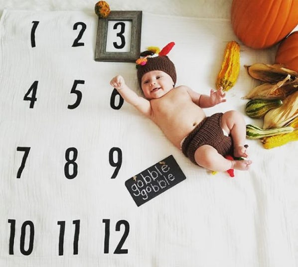 You can get a sleeping baby to do anything, as this Instagram photo proves, including make their grumpiest face, don a crocheted turkey hat, and sleep their Thanksgiving Day lunch off.