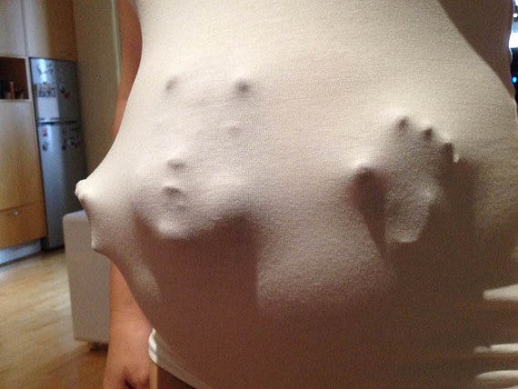 This super creative idea comes from the RandomThingsToWant shop on Etsy and all you need to give the illusion that you're carrying something not of this world is to insert the baby hands and face props ($14) under any shirt.