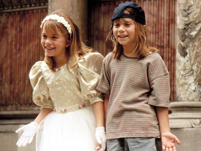 I mean, any parent of identical or super similar-looking fraternal twins needs to be wary of this, but Mary Kate and Ashley have played this little game several times in their movies. Just be prepared, OK? Because you think you can tell the difference until one of them dons a backwards hat and the other puts on lacy gloves.