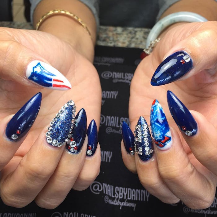 This glittery set of nails from Sallee's Nails is perfect for the Patriots fan that's ready to see their team shine.