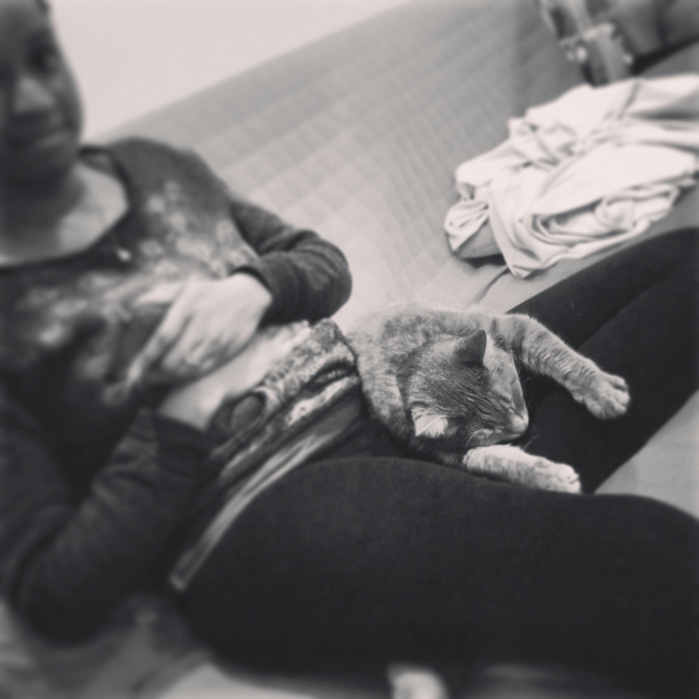 Something about a purring kitty just puts my soul at ease. My cat is always a friendly girl, but she got extra cuddly and protective of me as soon as I got pregnant. Feeling her purr against my belly while I rested was so amazing.