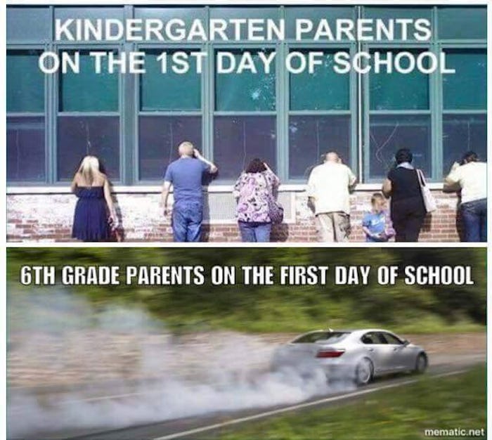 I'm not gonna lie, I'm totally going to be like those parents in the top photo come September. Kindergarten is just such a big step for our little ones, you know? What kind of friends will they make? Are they scared? Hungry? Will they get bullied? So many questions.