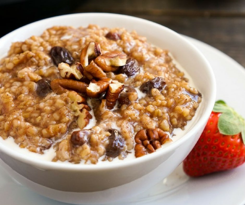 This simple yet delicious cinnamon-raisin steel cut oats recipe from Healthy Aperture is ideal for breakfast, but feels hearty enough to have to lunch, too. Kelly Mom shared that oats are a great source of iron, promote relaxation, lower cholesterol, and of course, increase milk supply — these are all solid arguments that make this dish a winner.