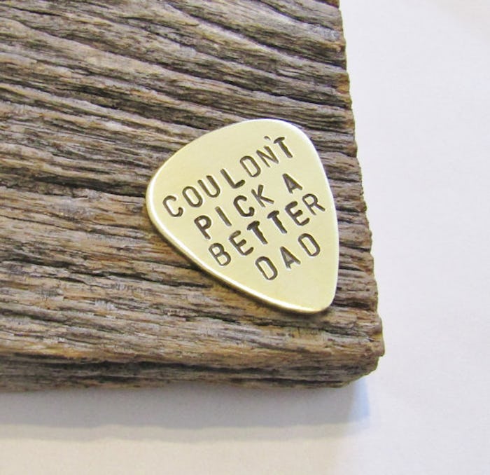 If Dad is a musician, baby will give him a gift he'll love and actually use with these hand stamped guitar picks.