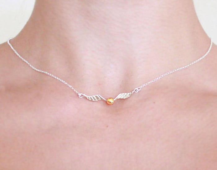 Pay homage to the youngest Hogwarts seeker in a hundred years with this golden snitch necklace. Unsuspecting Muggles won't even realize it's a delicate, stylish nod to Harry's Quidditch glory days.